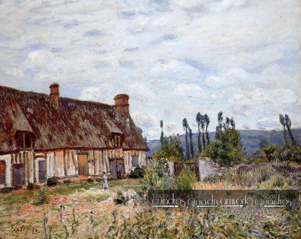 Tableau Maison abandonnée de Alfred Sisley", montre un paysage impressionniste rural... lire plus
