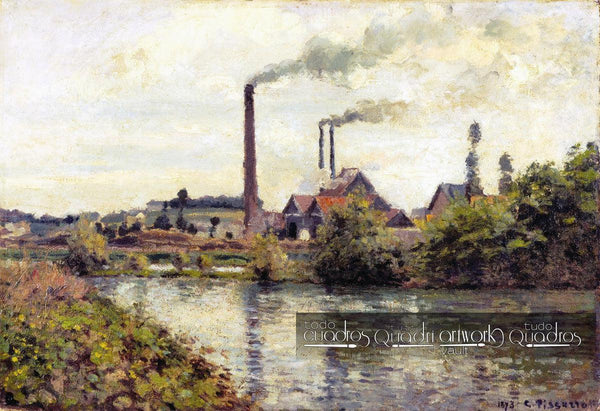 Œuvre d’art intitulée L'usine à Pontoise, peinte par Camille Pissarro à 1873.