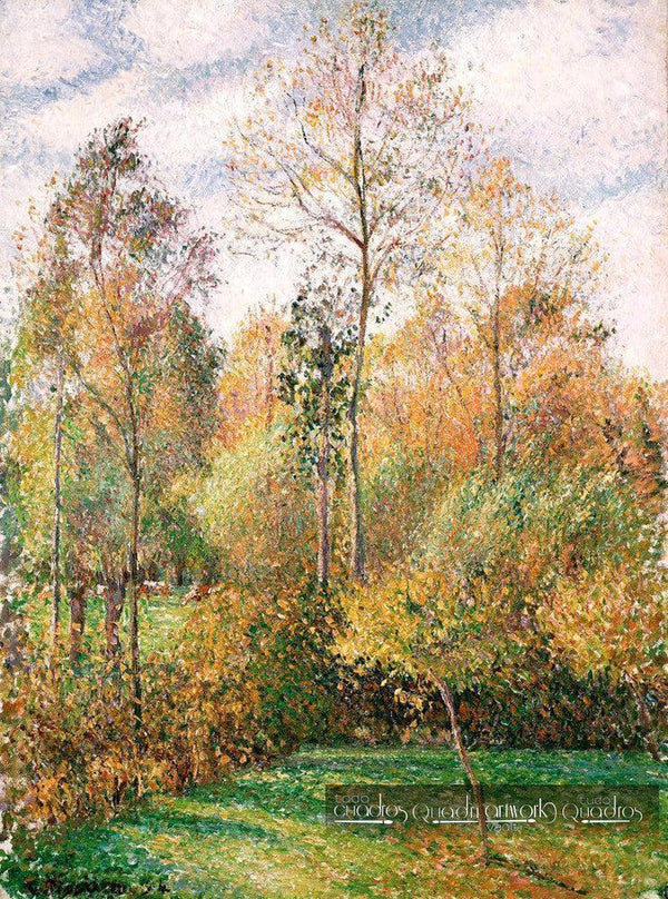 Titre du tableau : Automne, Peupliers, Éragny . Peinte en 1894 par Camille Pissarro.